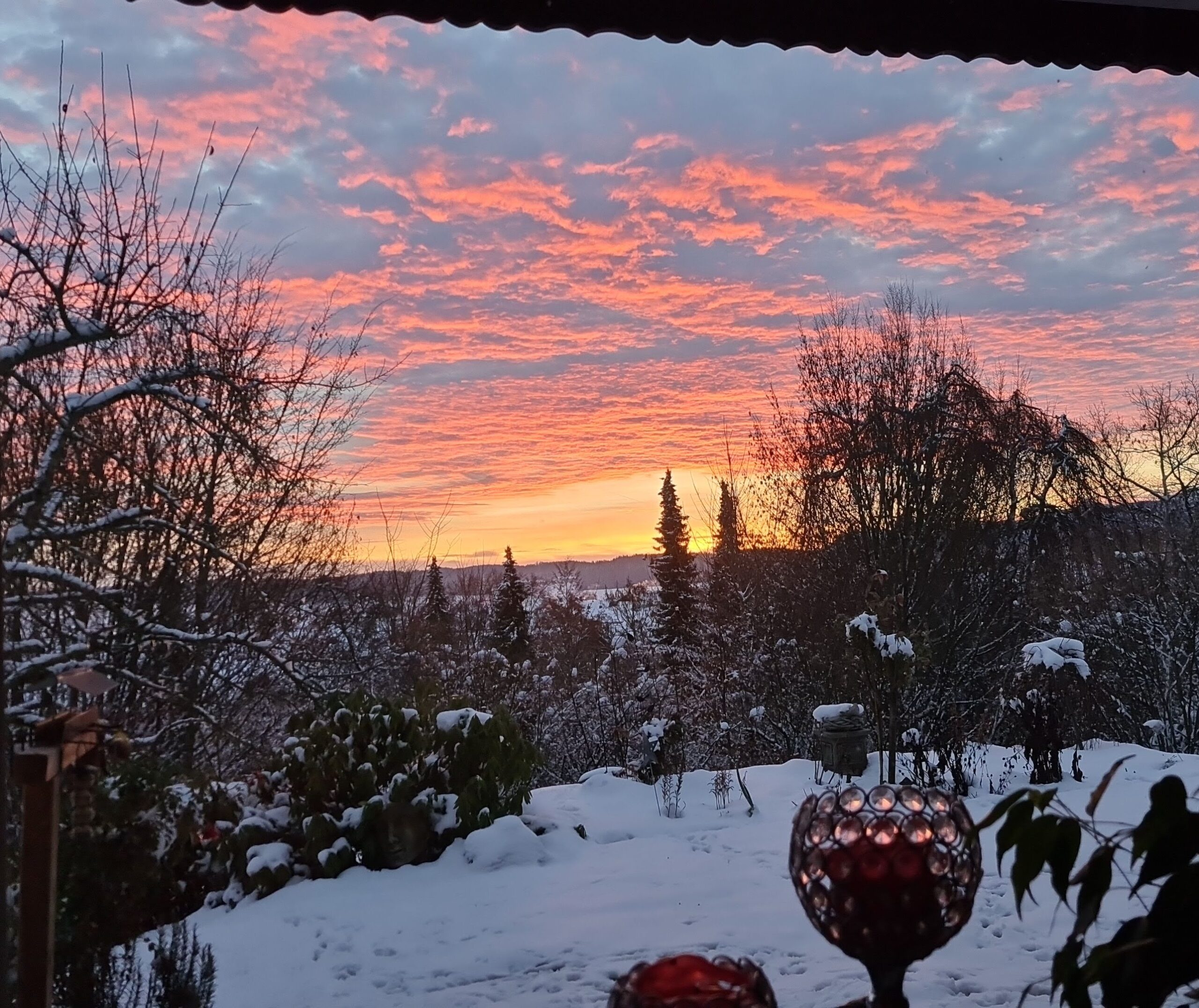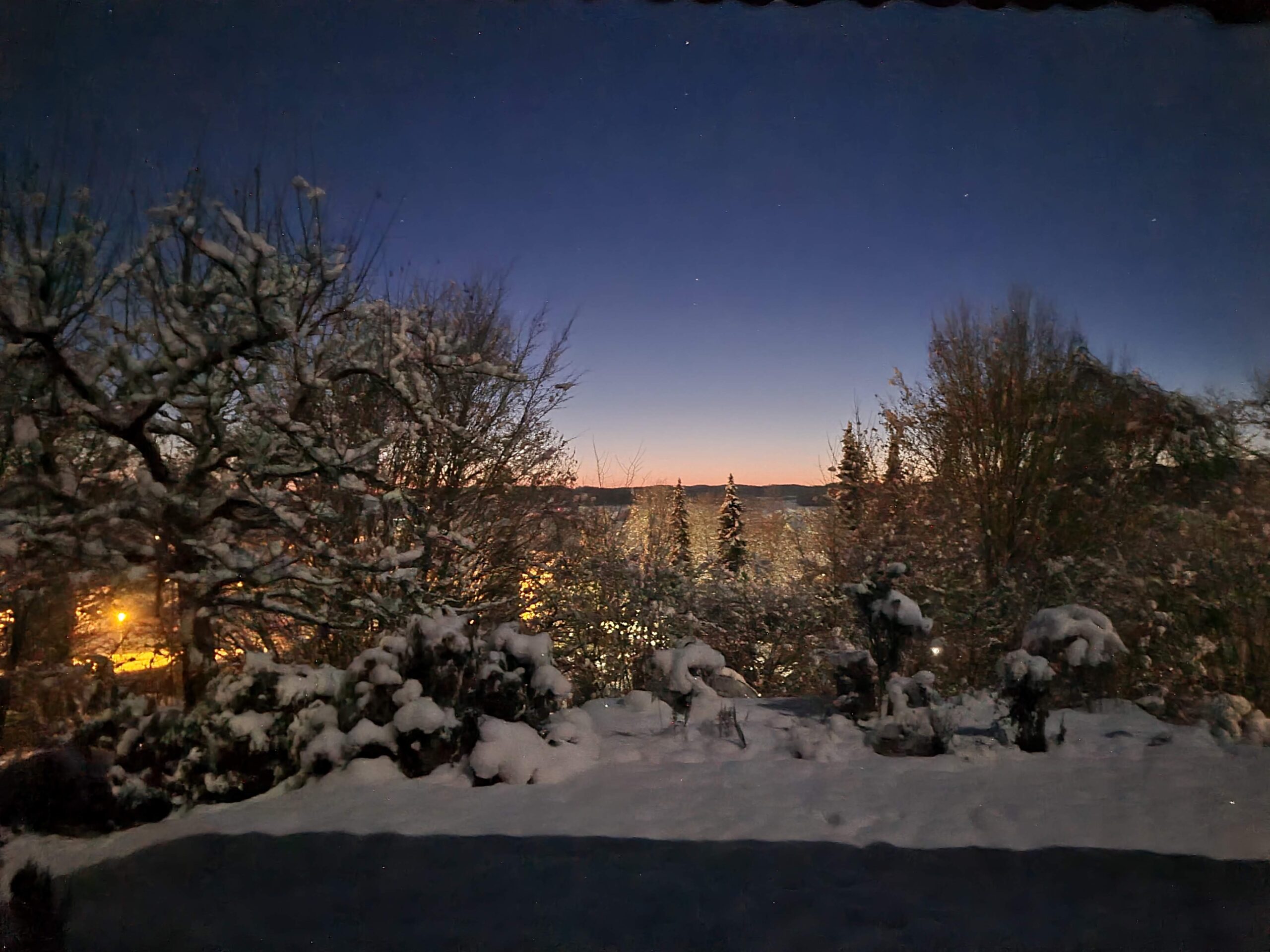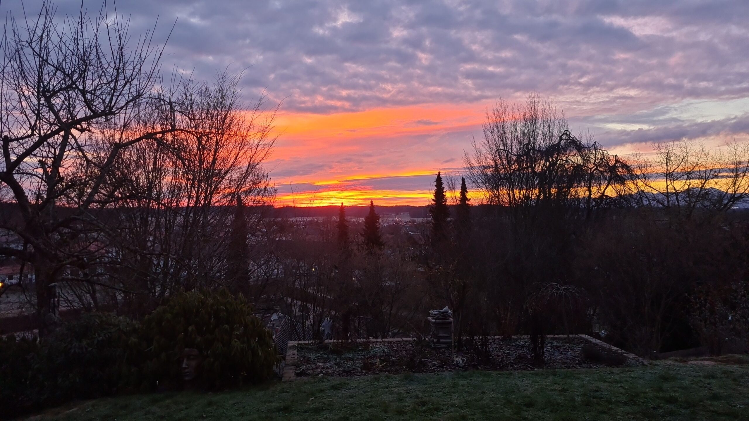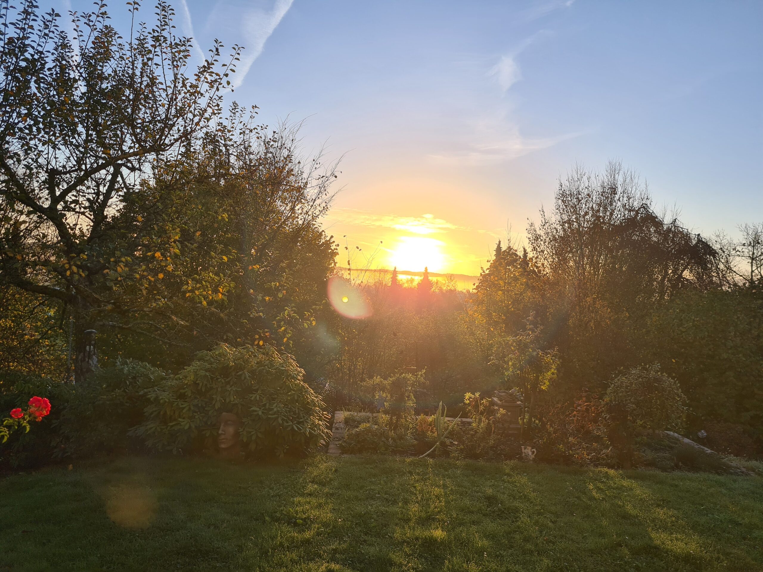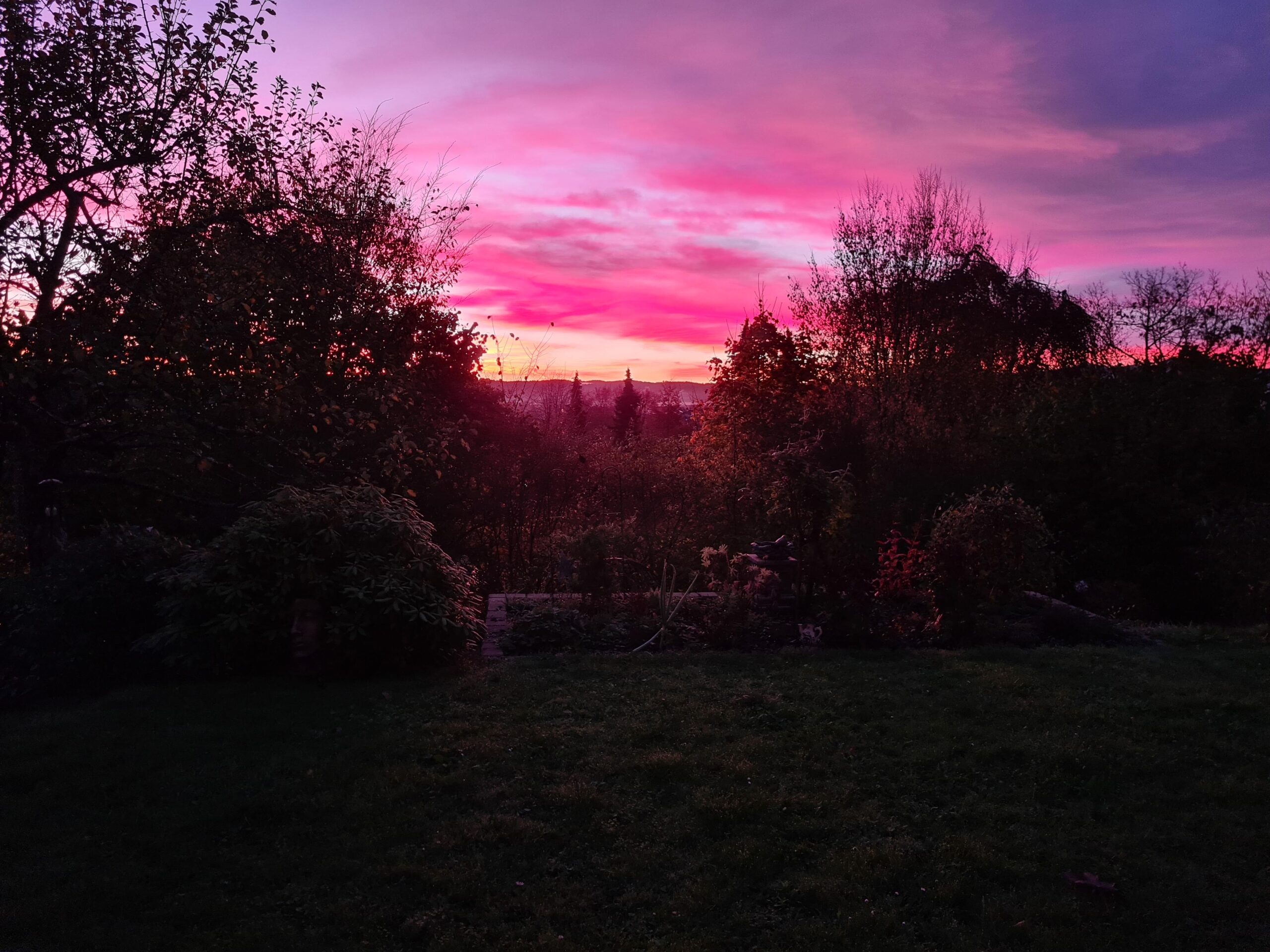 Bestimmt habe ich unseren Ausblick schon mehrere hundert Male geknippst (hier nur eine Auswahl :o) ). Es tut so gut, dort hinaus zu sehen, die Weite zu erfassen und die eigenen Gedanken treiben zu lassen. Viele Jahre hatte ich das nicht. In der Großstadt blickte ich auf andere Häuserwände oder den Verkehr. Und später bei meinem ersten Haus in Bayern auf einen faden Wohnblock. Da ging ich dann immer an einem Flusskanal spazieren und bekam die Weite, von der mein Wohnzimmer noch viele Jahre träumen sollte :-).