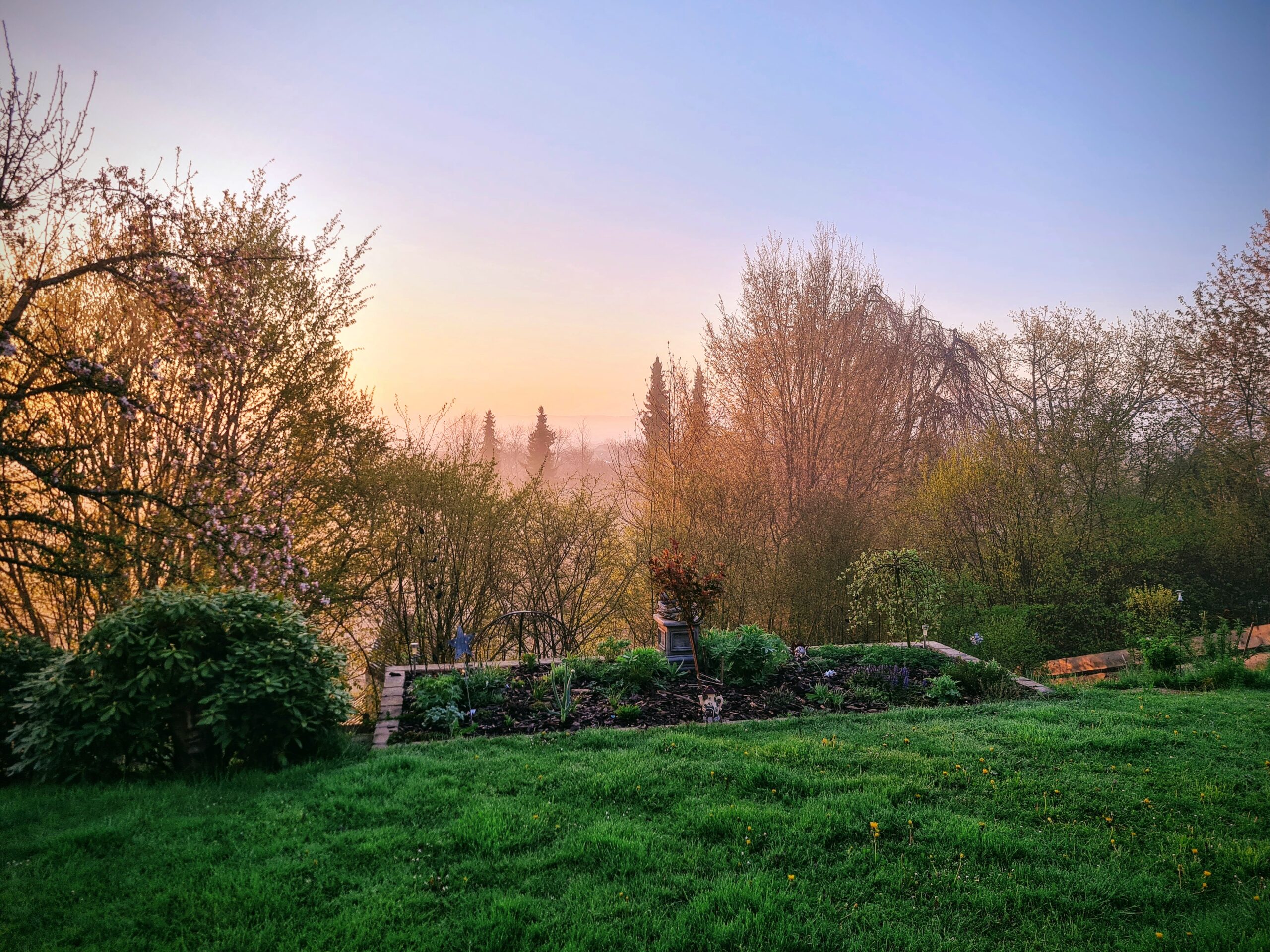 Ich liebe diesen Blick. Während ich diese Zeilen schreibe, hüpft gerade eine Amsel übers Hochbeet.